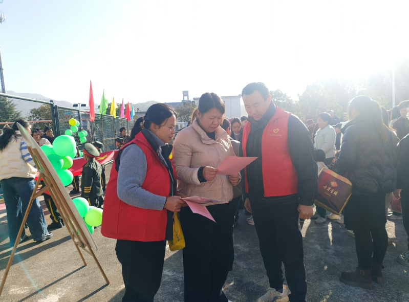 宣傳小分隊用通俗易懂的家鄉話,結合生活中的常見案例,耐心地講解著憲法的重要地位和防范電信詐騙的小竅門。家長們或是在比賽間隙認真翻閱,或是饒有興致地駐足傾聽,現場氛圍輕松而融洽。