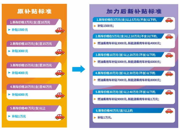 個(gè)人消費(fèi)者購買符合國六排放標(biāo)準(zhǔn)燃油乘用車新車或新能源乘用車新車(以下簡稱“新車”)的,按新車《機(jī)動(dòng)車銷售統(tǒng)一發(fā)票》價(jià)格(含稅)給予一次性定額補(bǔ)貼。